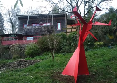 Je façonne principalement l’acier et l’inox, que je déforme, plie ou compresse pour exprimer la tension entre force et fragilité. Ce dialogue avec le métal me permet de traduire des émotions humaines, des mouvements naturels, ou des symboles universels- du cri de la nature à la grâce d’un envol.